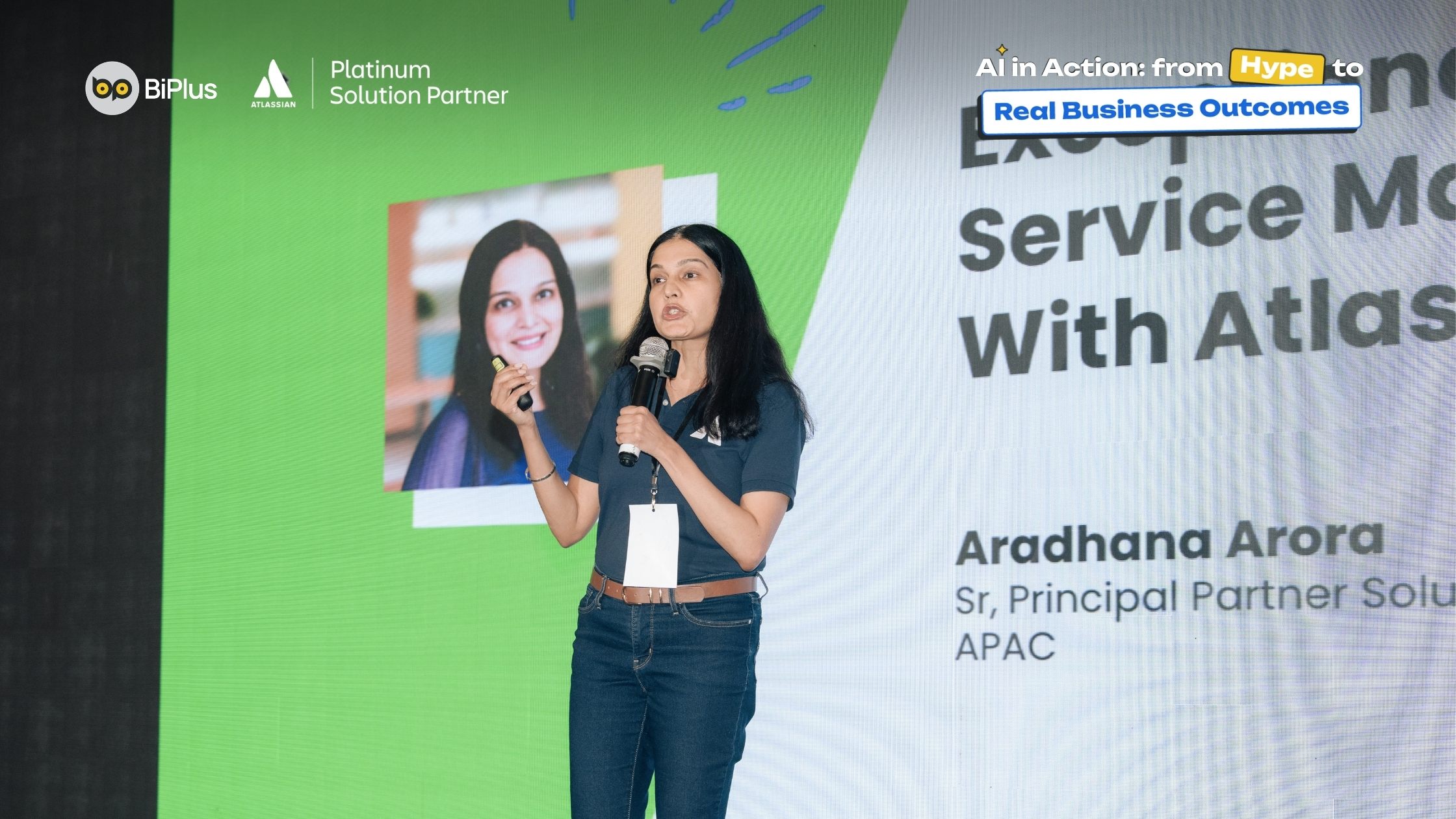 Buổi chiều, Ms. Aradhana Arora – Senior Principal Partner Solution Strategist, Atlassian – chia sẻ về Atlassian Service Collection và hành trình chuyển từ IT Service Management (ITSM) sang Enterprise Service Management (ESM). Bài keynote trả lời câu hỏi: Service Collection là gì và đang giải bài toán nào cho doanh nghiệp, nhấn mạnh đây là bộ giải pháp quản trị dịch vụ hiện đại, giúp thiết kế, vận hành dịch vụ nội bộ nhất quán, linh hoạt với nhiều quy trình, kết nối tốt với hệ thống sẵn có và sẵn sàng khai thác AI để tối ưu vận hành. Các use case được khán giả quan tâm nhất xoay quanh cải thiện trải nghiệm nhân viên, chuẩn hóa, tự động hóa quy trình lặp lại và làm cho việc phối hợp giữa service desk với các team phía sau trở nên mạch lạc.